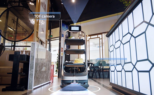 - Uma variedade de sensores (LiDAR, câmeras de profundidade, sensor de penhasco) para detecção em tempo real e prevenção de obstáculos, fornecendo proteção completa de seus ativos e clientes